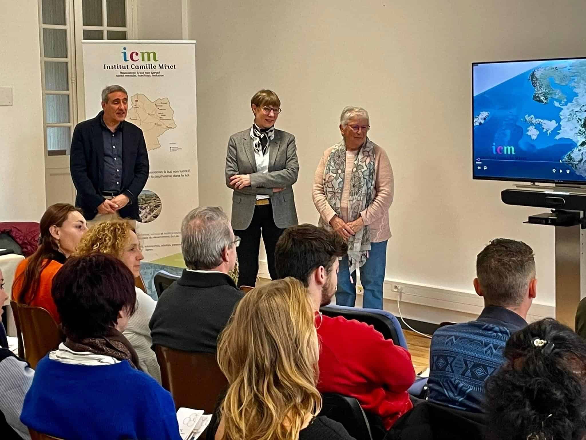 Après un café d’accueil et le mot de la présidente de l’Association, Régine Lassale, la direction générale, Frédérique Yonnet-Query et Franck Antetomaso, entourés par la nouvelle présidente de la CME (Commission Médicale d’Etablissement), Dr Jessica Yameogo (Discours d’Accueil CME en fin d’article), Anne A’Campo et Stéphanie Perrinet, directrices du médico-social et d’Emmanuel Scicluna cadre supérieur de santé du Centre Hospitalier Jean-Pierre Falret, a présenté l’ICM dans son ensemble, son histoire, ses valeurs et les grands projets à venir.
