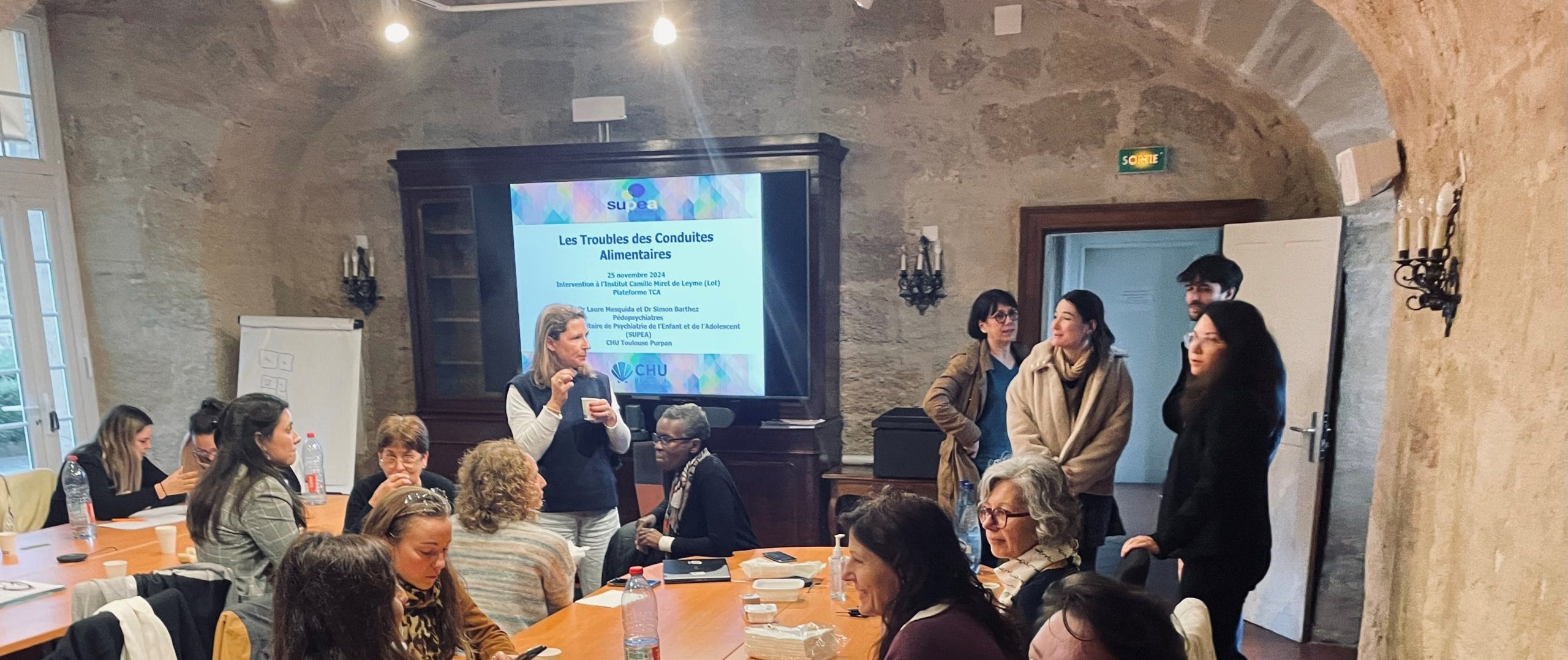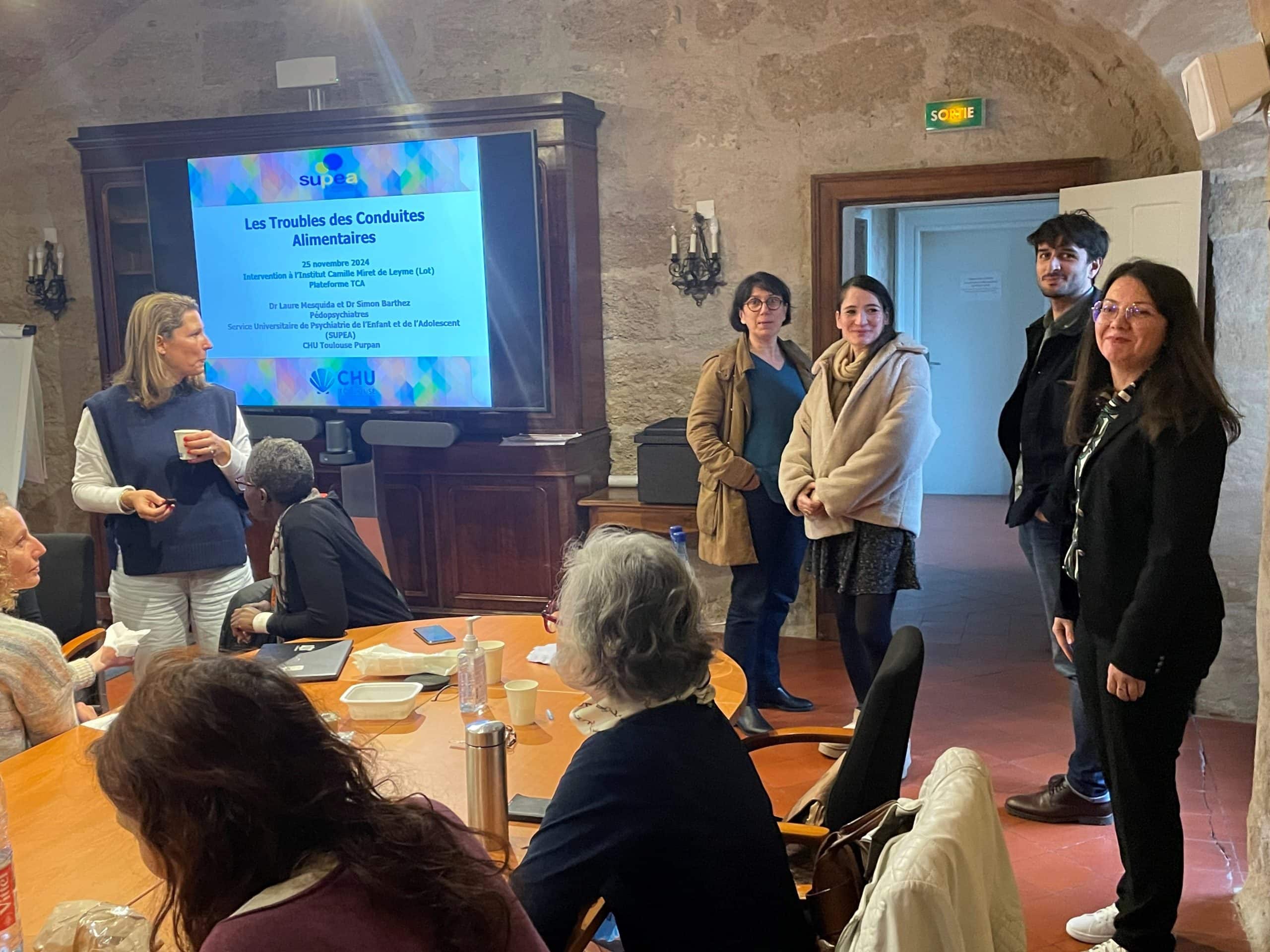 [Partenariat] Très heureux d’accueillir à l’Institut Camille Miret Dr Laure Mesquida et Dr Simon Barthez, pédopsychiatres de Supea (Service Universitaire de Psychiatrie de l’Enfant et l’Adolescent) du CHU Toulouse Purpan venus présenter la plateforme TCA (Troubles des Conduites Alimentaires) créée en janvier 2024.