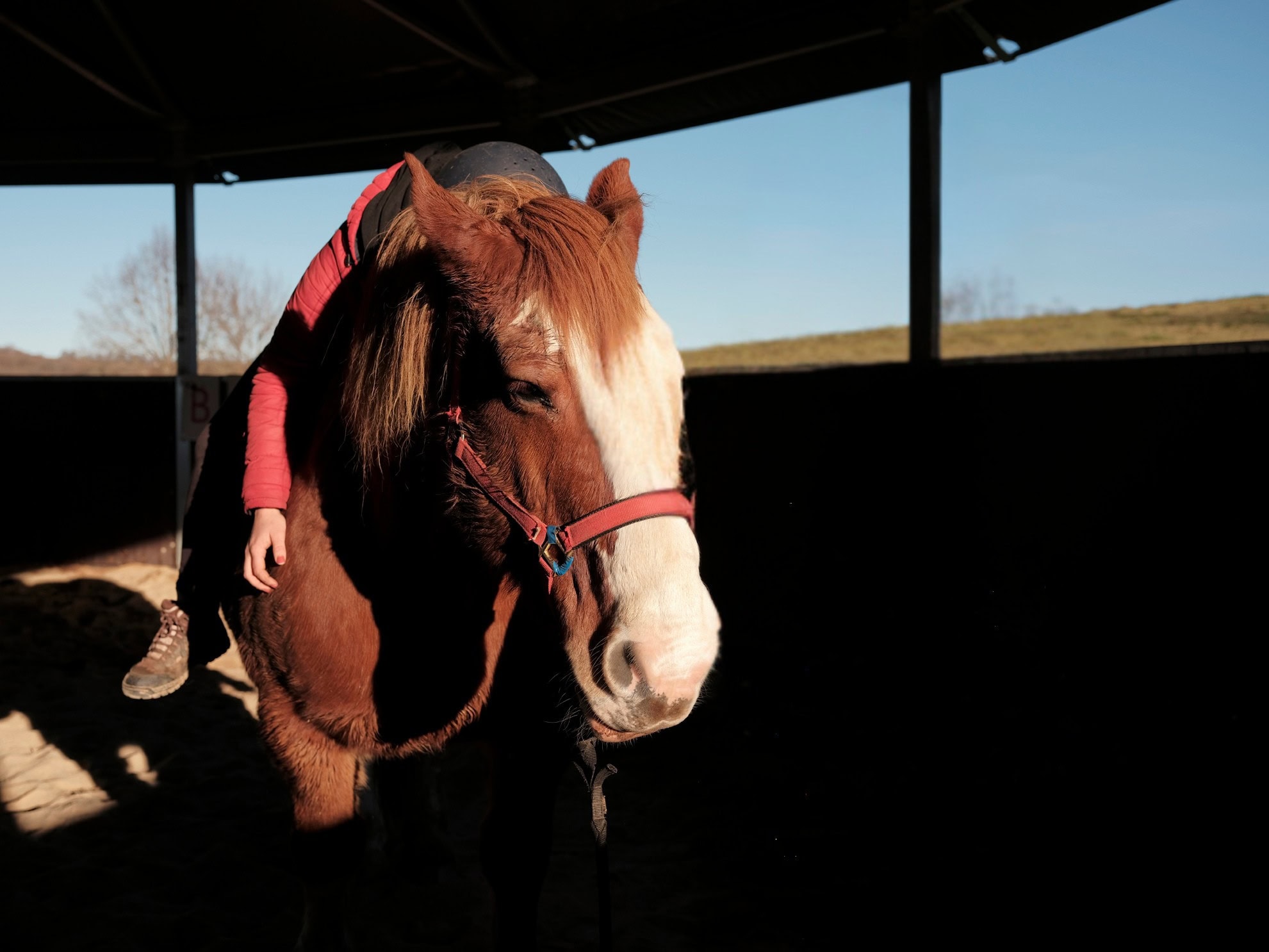 « Tu vas être bien, ma belle. » murmure Émilie en caressant la joue de la jument à robe alezan. « Mais oui ! Elle va être brossée et bien bichonnée », rassure Yan, son heureux nouveau propriétaire. « J’ai du temps et ça me fait du bien, c’est un peu ma thérapie aussi », nous confie-t-il avec le sourire. Une thérapie qui bénéficie à l’homme comme à l’animal, puisqu’Océane sera choyée pour le reste de ses belles années.