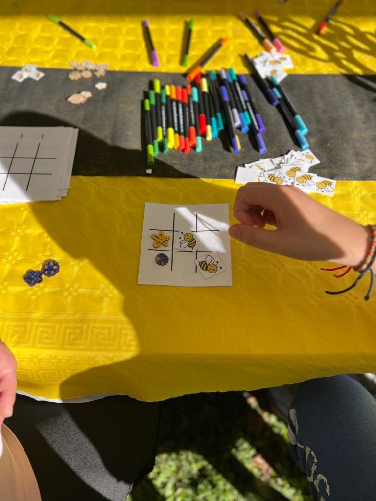 - Un atelier créatif proposait la confection d’une ruche et d’un jeu de morpion.