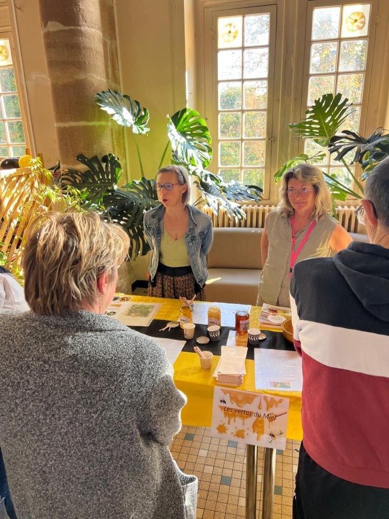 - A l’intérieur et à l’extérieur de la c@fétéria des patients, sur le site de Leyme, ça bourdonnait : ateliers, activités ludiques, créatives, présentations et dégustations.